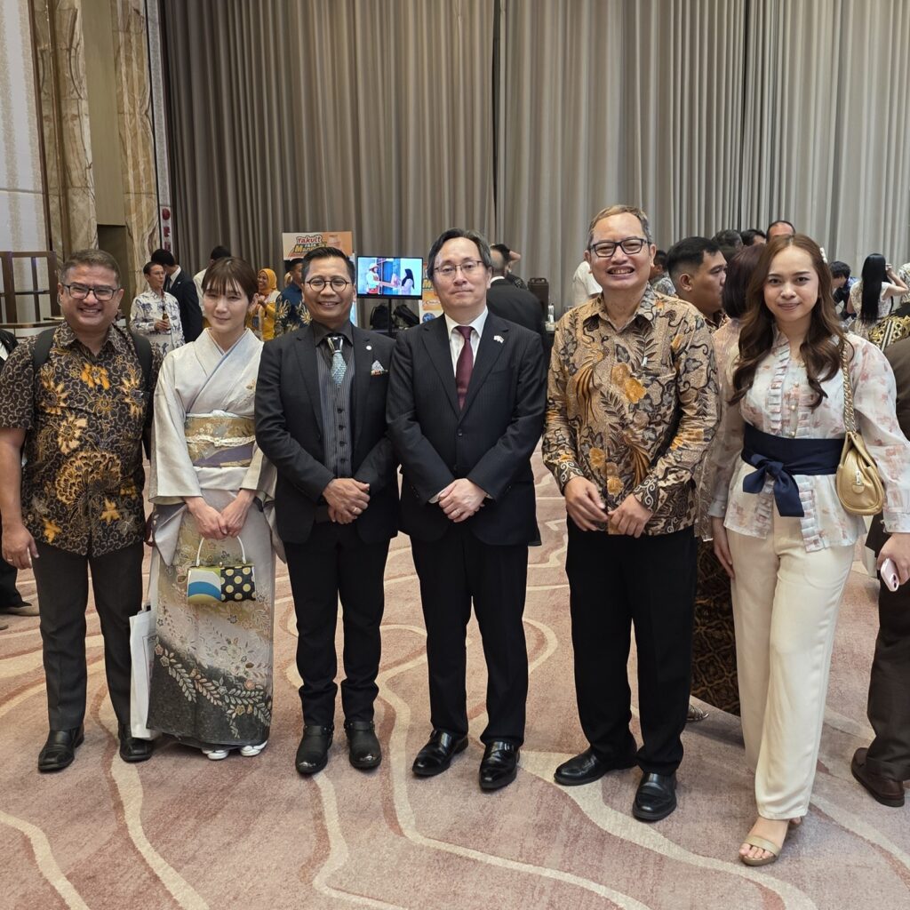 Ki-ka 左右: Bapak Salim Mustofa (Secretary General, IABIE), Mrs. Yumika Naito (Hamaren, Japan), kang Usman Naito (CEO, Hamaren / KAJI-PR Head), H.E. MYOCHIN Mitsuru (Charge d’Affaires ad interim, Embassy of Japan in Indonesia), kang Fuad (Chairman, KAJI), mba Alika (Miss Sakura 2025). Pada Perayaan Ulang Tahun Kaisar, kami menyampaikan salam kepada Yang Mulia Bapak MYOCHIN...